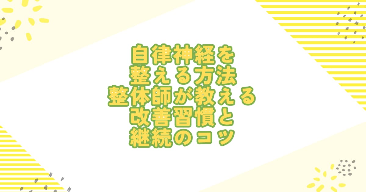 自律神経を整える方法|整体師が教える改善習慣と継続のコツ